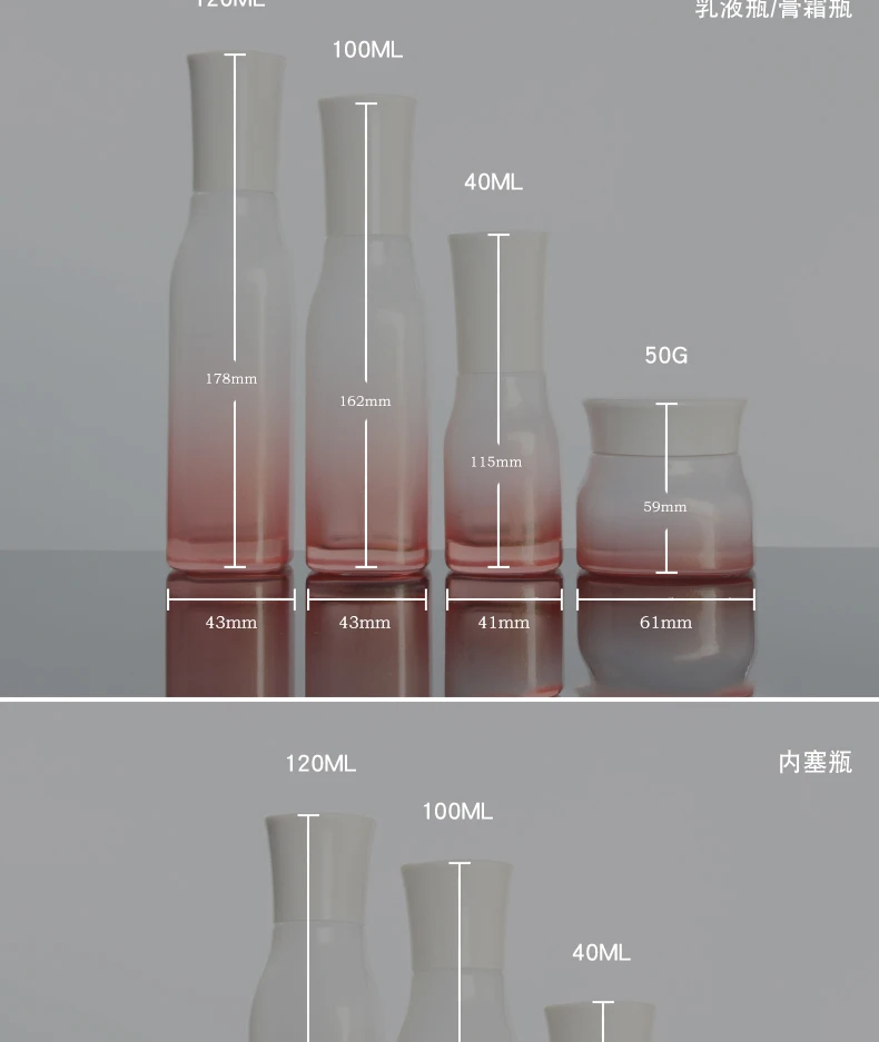120ml,100ml,40ml Frosted Clear Glass Lotion Pump Bottle,White Cap,50g,Empty Cream Jar,Gradient Red Cosmetic Packing Container