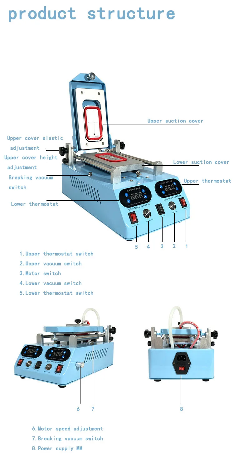 Функция: удаление средней рамки экрана, внутренней средней рамки (только двусторонний клейкий материал), отдельный экран (увеличение всасывания 200%)