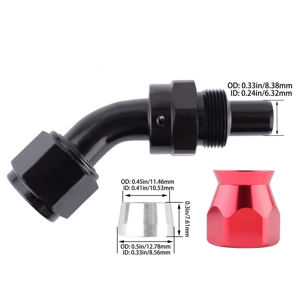 SPEEDWOW Car Part AN6 45 Degree Oil Cooler Fitting Adapter Fit For PTFE Oil Hose Oil Fuel Swivel Hoes End Aluminum