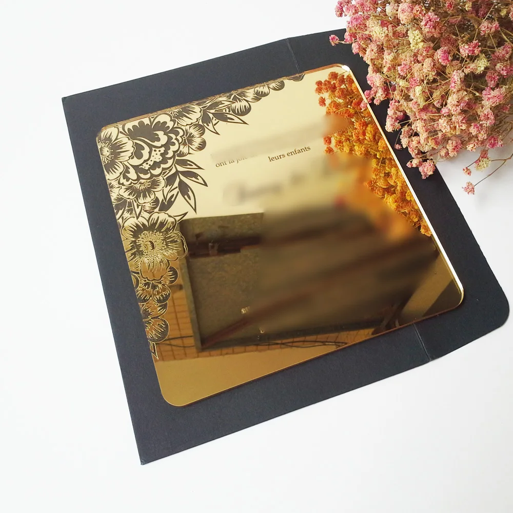 Индивидуальные 60 шт. в партии 14x14 см квадратная Золотая зеркальная акриловая Свадебная пригласительная открытка отправляется только в Австралию