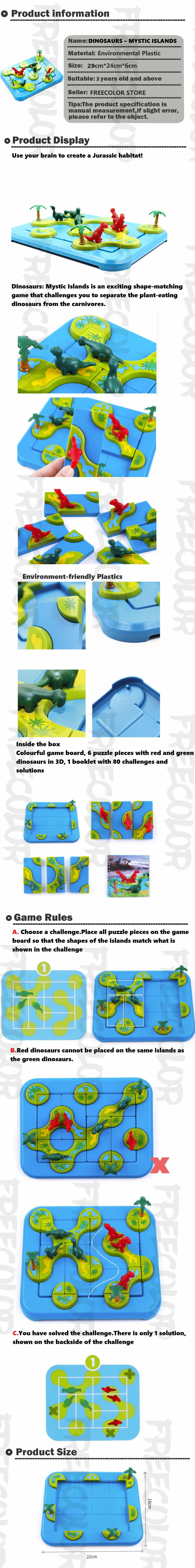 Шаг 1 выберите вызов. Поместите все кусочки пазлов на игровую доску так, чтобы формы островов совпадали с тем, что показано в вызове Шаг 2 красные динозавры не могут быть размещены на тех же острова, что и зеленые динозавры. Шаг 3-только одно решение одной проблемы. Показан на обратной стороне вызова