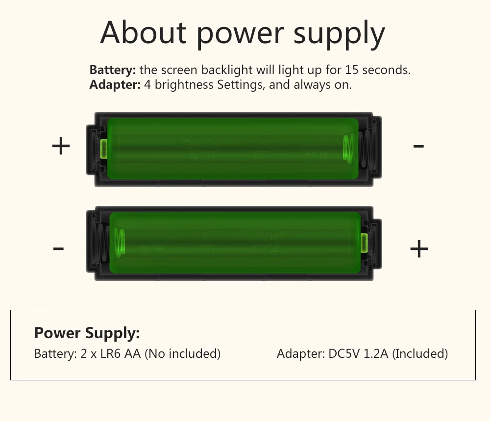 Примечание: в течение определенного периода времени, когда продукт только начал работать, могут быть ошибки в измерениях. Мы рекомендуем, чтобы продукт работал более 24 часов. Поскольку датчики производятся в различных партиях, они могут иметь небольшие ошибки. Продукт относится к нормальной работе в пределах стандартного диапазона ошибок: температура ± 2 ℃, влажность ± 10%. Прогноз погоды рассчитывается на основе датчиков и программного обеспечения, и могут быть ошибки с профессиональными данными о погоде. Мы рекомендуем вам взять данные с профессиональных веб-сайтов прогноза погоды в качестве стандарта. Вы можете связаться с нами по любым вопросам о продукте, и мы сделаем все возможное, чтобы помочь вам решить эту проблему.