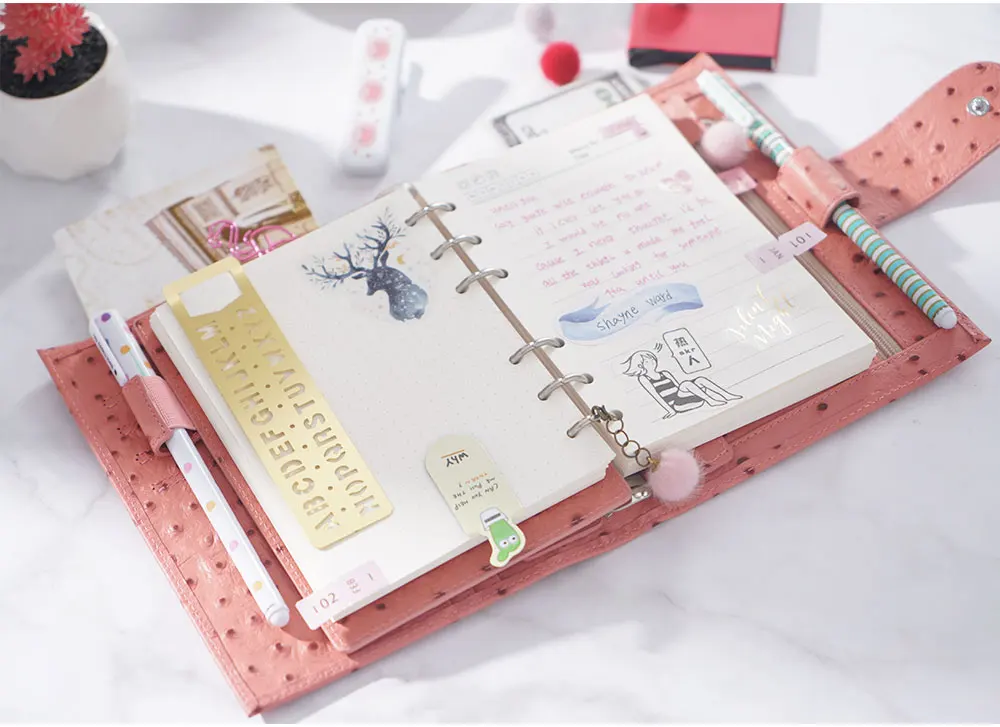 Высококачественные кольца, 6 отверстий, размер был показан на картинке. Это макс для 120 листов бумаги A5 100g. Эти кольца можно легко заменить, открыв винты.