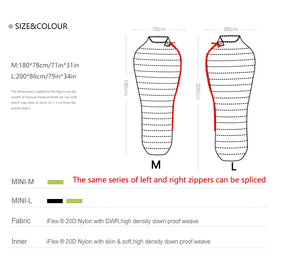 Sleeping Bag Weight: About 408g /528g (Does not include compression bag and storage bag weight)
