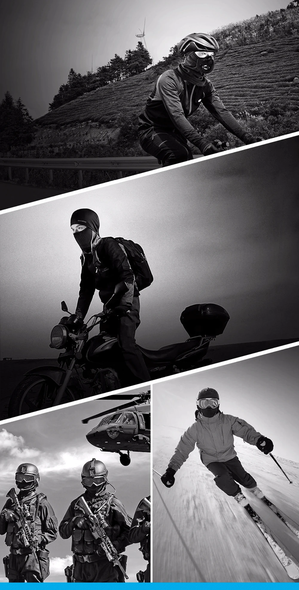 Очень удобно носить их во время: катания на лыжах, мотоциклистов, бега, езды на велосипеде, треккинга, альпинизма, сноуборда, пейнтбола, охоты, тактического обучения, велоспорта и других видов активного отдыха на свежем воздухе.