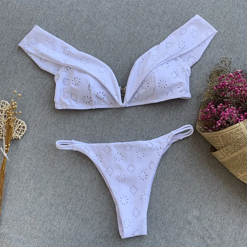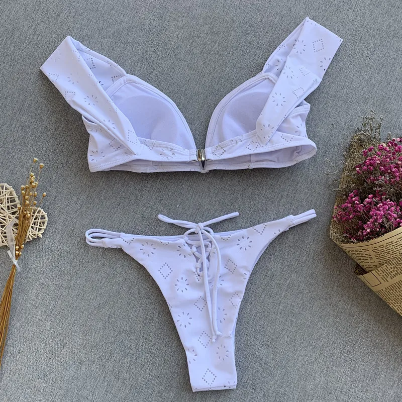 Женский однотонный купальник бикини пуш ап без косточек треугольный лето