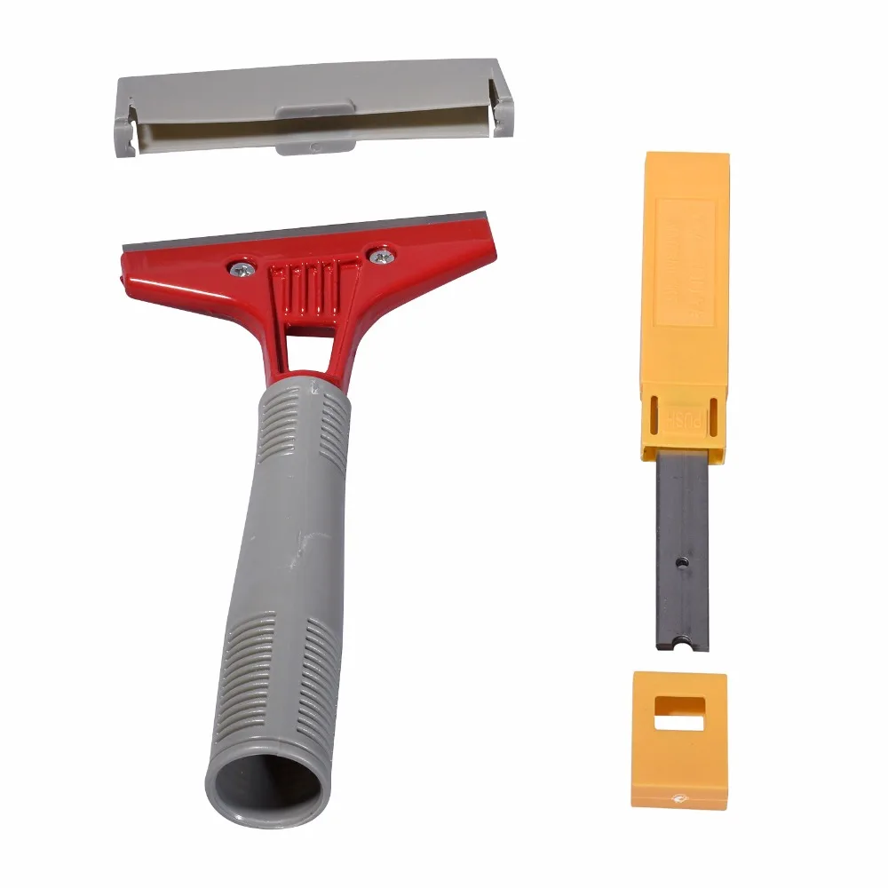 Model : A16+A16B Product : handle Scraper with blade Size: 21cm*10cm Material: plastic and steel Application: Building tools, industry tools,household cleaning tools,car film and glue remover,ice remover Feature:Eco-Friendly,high quality,useful , multifuction Package Include:1pc handle scraper+10 pcs blades