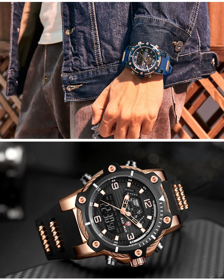 Материал корпуса: нержавеющая сталь Чехол Диаметр: 48,5 мм Чехол Толщина: 20,5 мм Группа Материал: Резина Длина ремешка (включая чехол): 260 мм Группа Ширина: 23,5 мм Вес: 173 г Что входит в комплект 100% KADEMAN новые оригинальные мужские часы