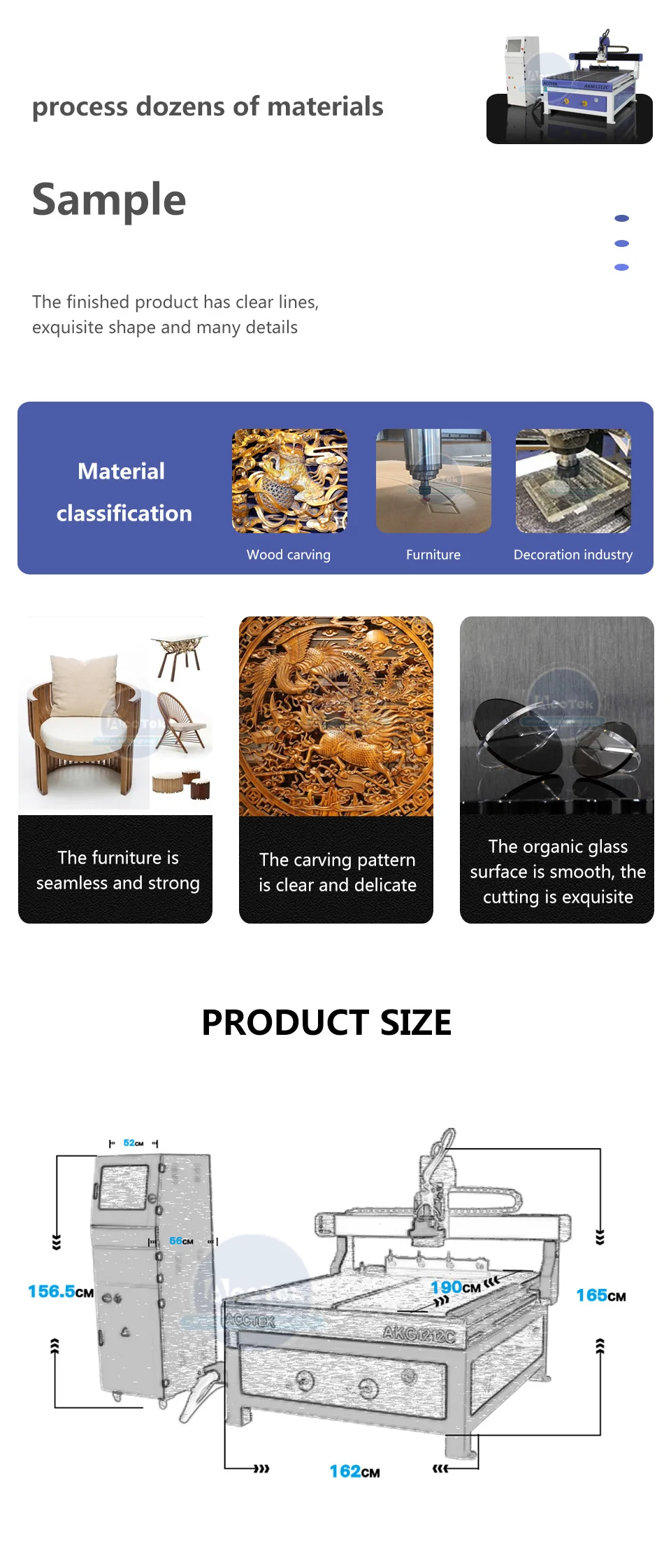 Применимые материалыОн широко используется для производства деревянного ремесла, двери шкафа, компьютерного стола, рядом с шкафом, сборочной мебели,И массовая гравировка на MDF и HDF, деревянная доска, плоское вырезывание, 3D тиснение и так далее.