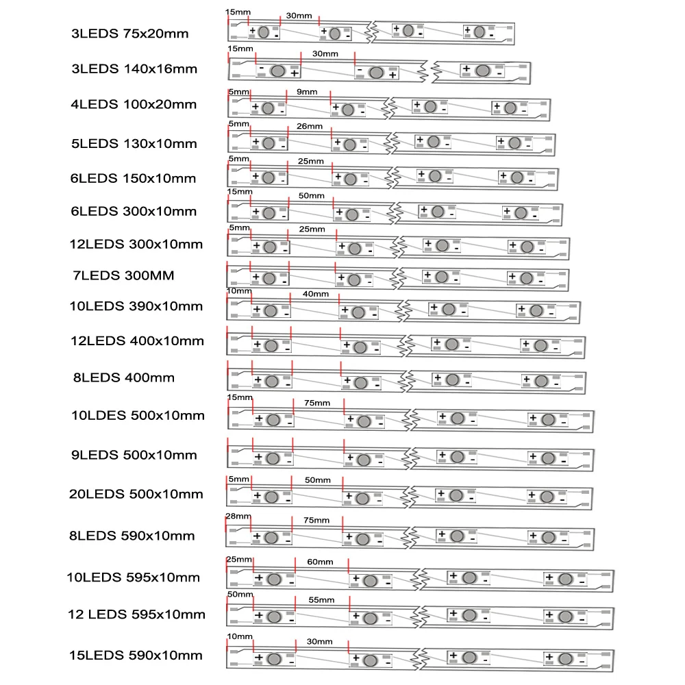 *Алюминиевая пластина, 10 шт., 8 светодиодов, 396 мм.