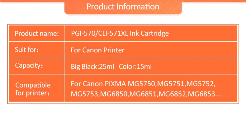 Совместимый чернильный картридж для PGI-570 CLI-571