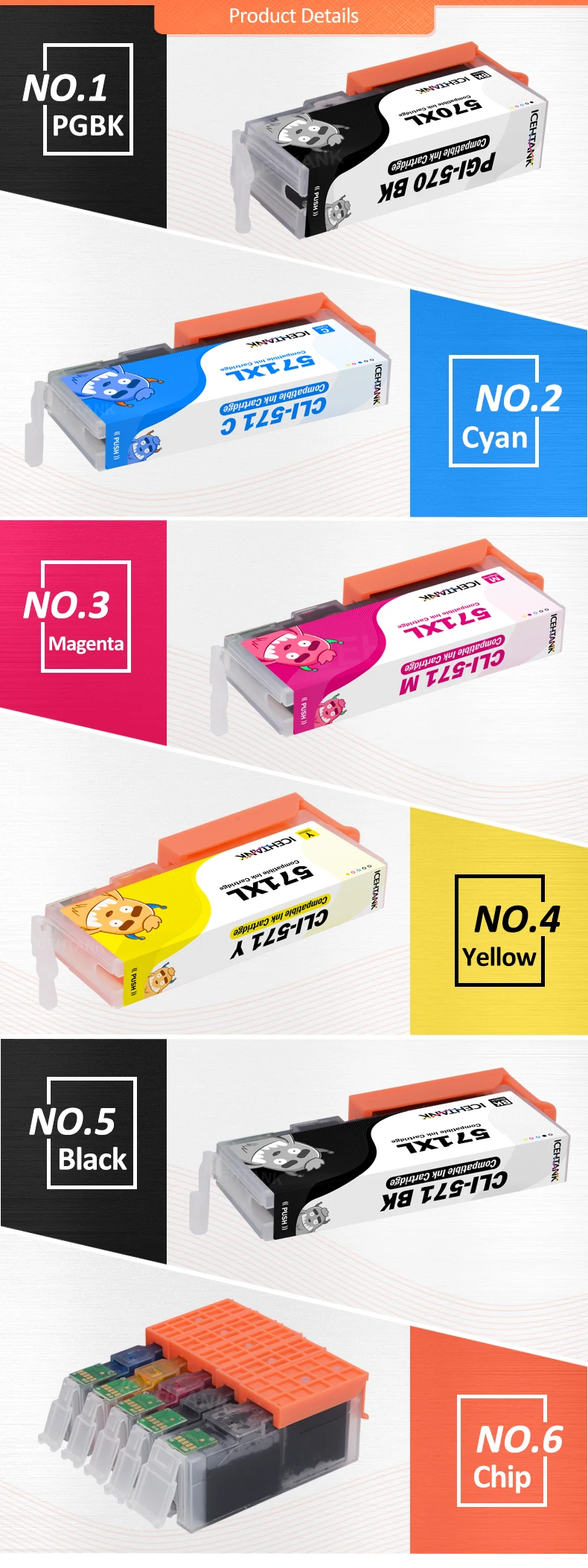 ICEHTANK совместимый чернильный картридж для Canon PGI 570 PGI-570 CLI-571 PGI570 PIXMA