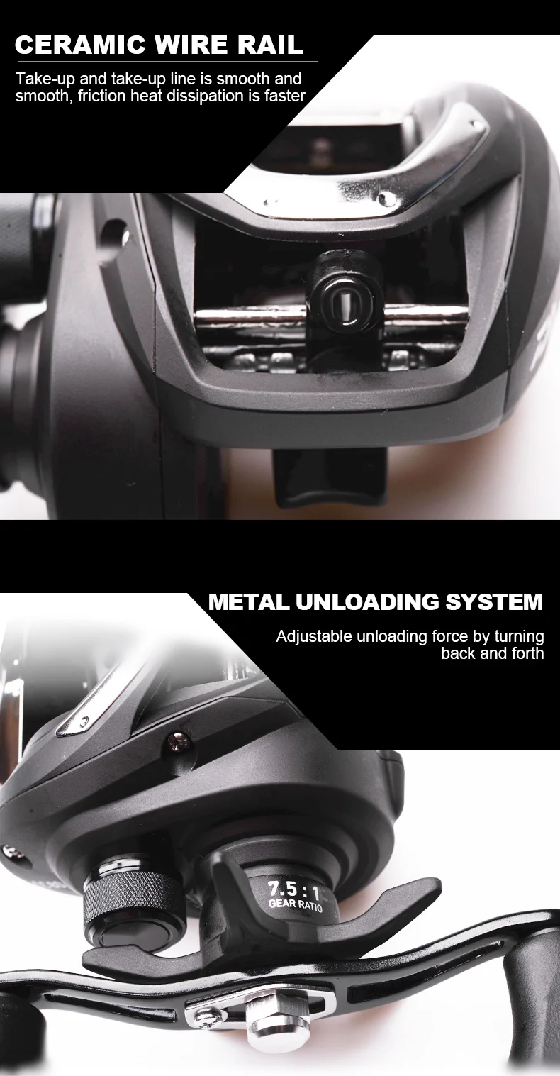 1. Легкая металлическая катушка, полый дизайн в целом 2. Мощность Магнитная Тормозная система, гибкой передачи 3,5 Магнитная тормозные колодки, значительно уменьшить или исключить задний ход 4. Звездная разгрузочная сила, легкая и прочная, высокая чувствительность