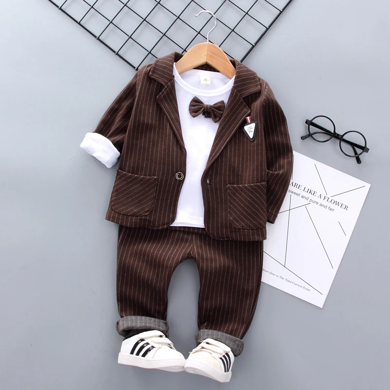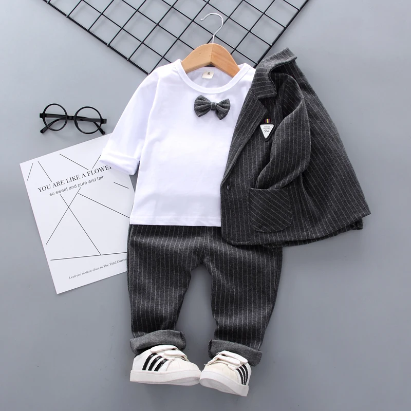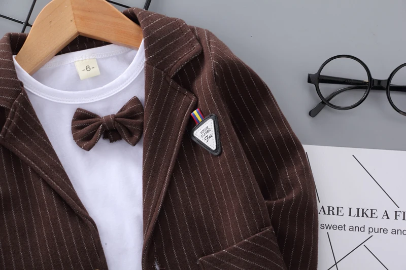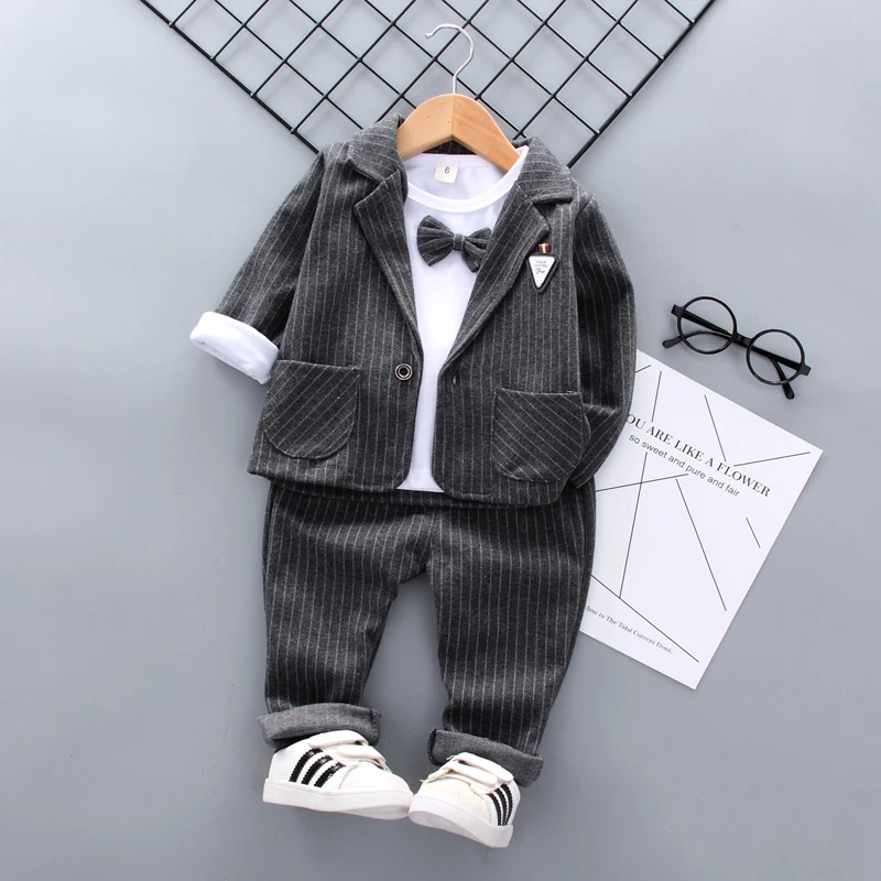 Детский блейзер с галстуком, формальная хлопковая повседневная одежда джентльмена на весну-осень, куртка для маленьких мальчиков и девочек, футболка и штаны, 3 шт./компл., комплект для младенцев, для От 0 до 4 лет, 2019