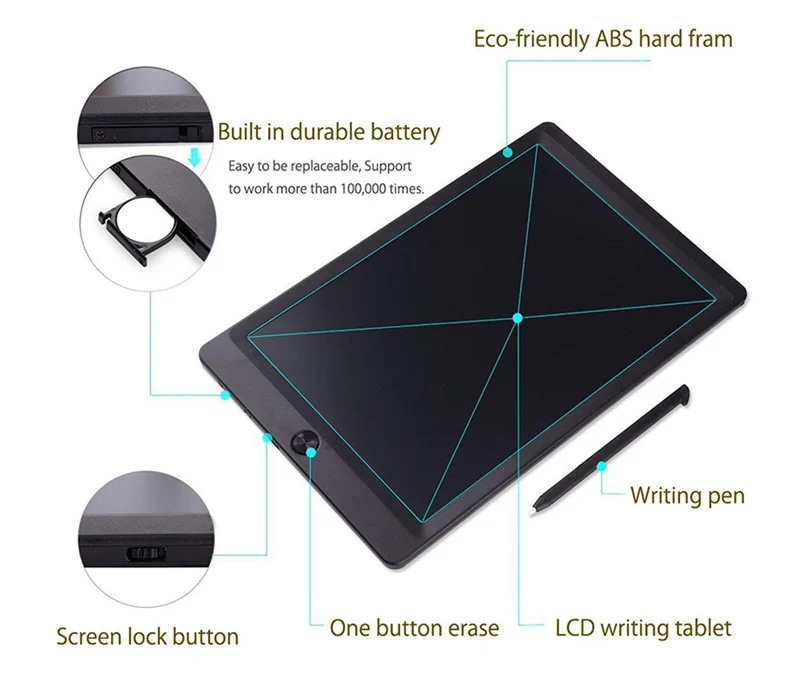 Записная доска eWriter избавляет от необходимости в бумаге, блокнотах для царапин и липких заметках-просто пишите и Стирайте. Прочный, ультра-легкий ЖК-экран предназначен для того, чтобы чувствовать себя как письмо с ручкой на бумаге. Изображение остается до тех пор, пока оно вам нужно, и его можно стереть одним нажатием кнопки. Создавайте снова и снова, без необходимости зарядки или подключения.