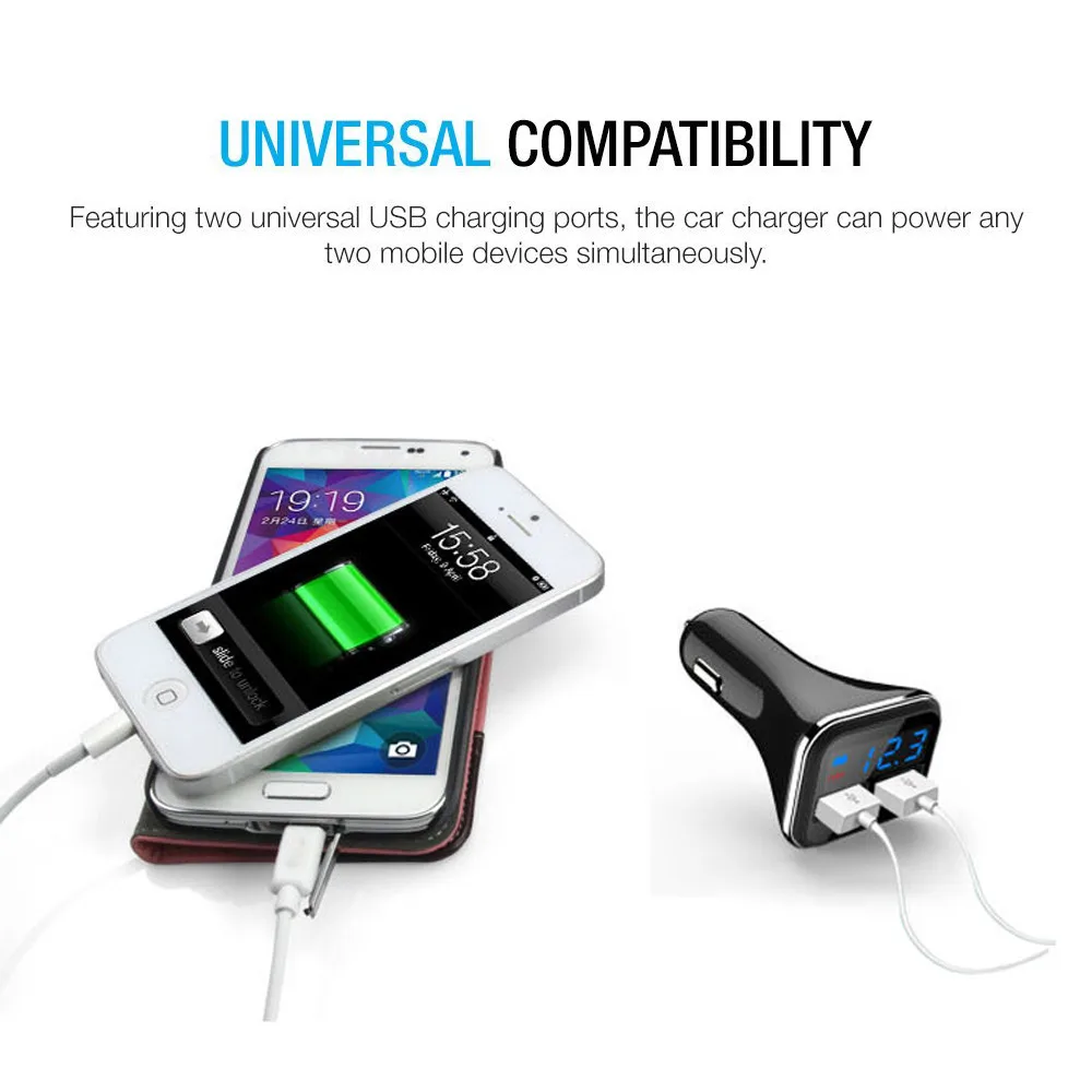 Quick Charge Dual USB Smart Car Charger Adapter Voltage DC 5V 4.8A Tester For iPhone Samsung
