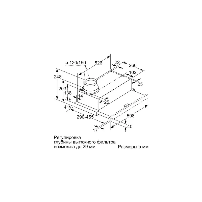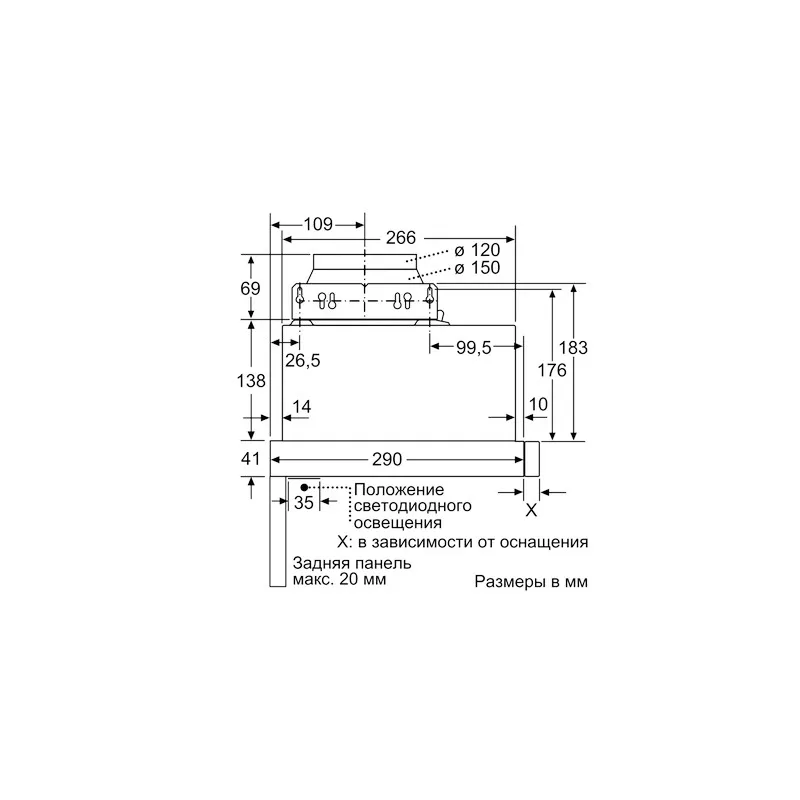| Диаметр вытяжного патрубка (мм) | 120 / 150 |