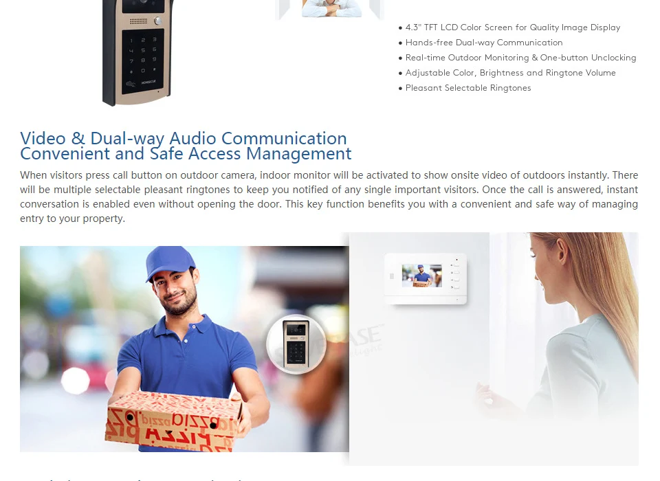 HOMSECUR 7" Video&Audio Smart Doorbell with Password & ID Access for House/Flat BC081+BM717-S | Безопасность и защита