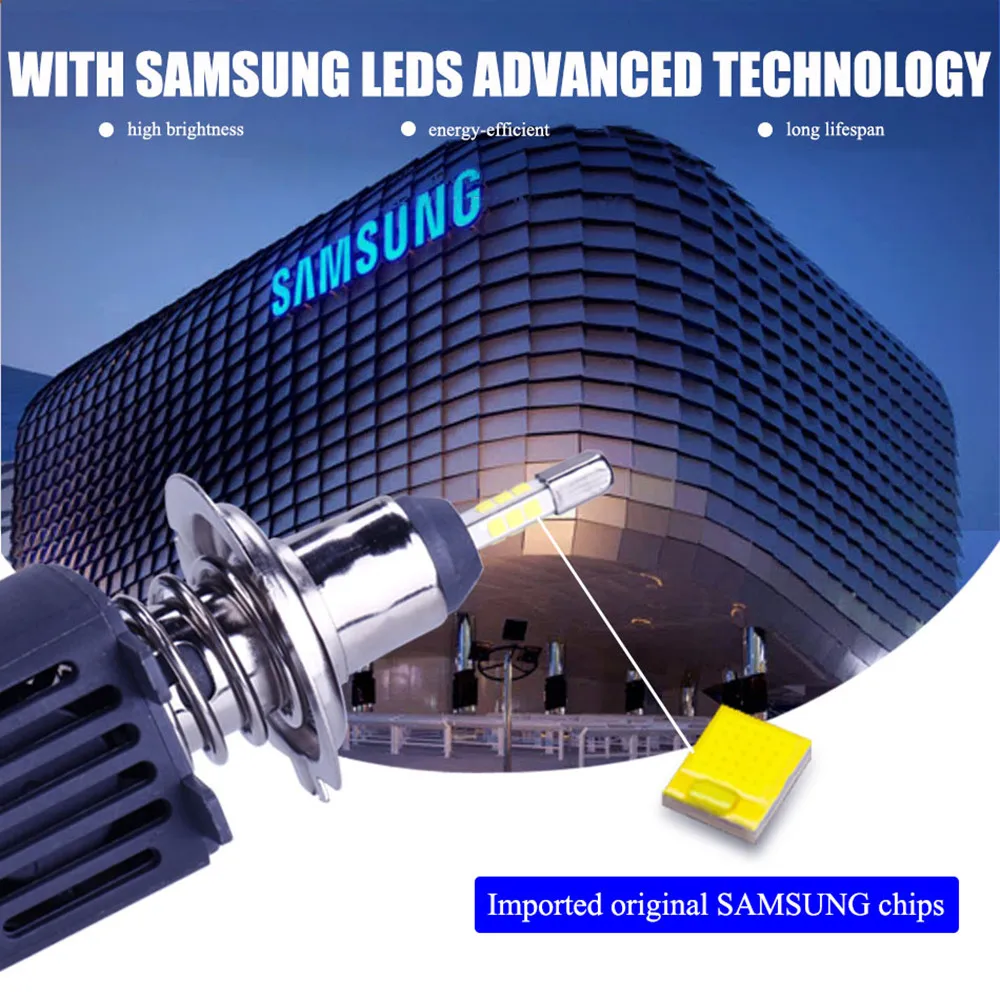 Светодиодные Автомобильные фары SAMSUNG H4 H7 H8 H9 H11 9005 9006 D1S D2S D3S D4S 10000LM, автомобильные фары 6500K, лампочки
