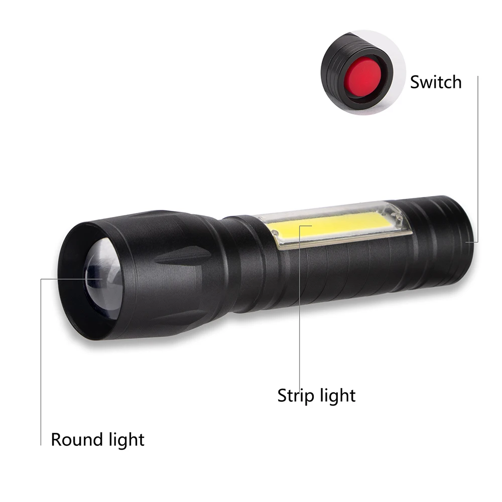 3 режима светодиодный светильник: кнопка включения/выключения триггерный переключатель с XPE высокий светильник, COB низкий светильник, COB стробоскоп.
