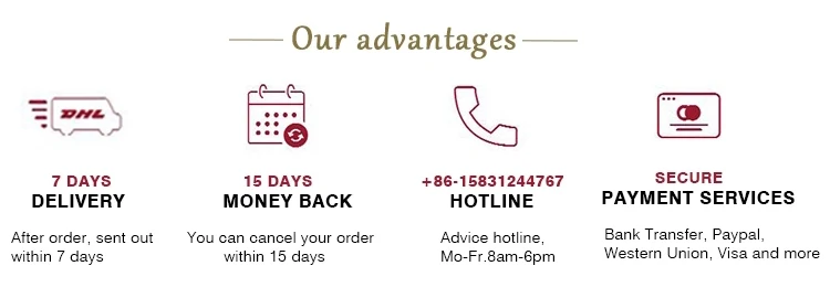 Hotline +86 15831244767 - Advice Hotline, Mon-Fri .8am-6pm. (Chinese time) We're here to help and our Customer Service Staff speak English! Please don't hesitate to call our Advice Hotline with any inquiries you may have about our products or services.