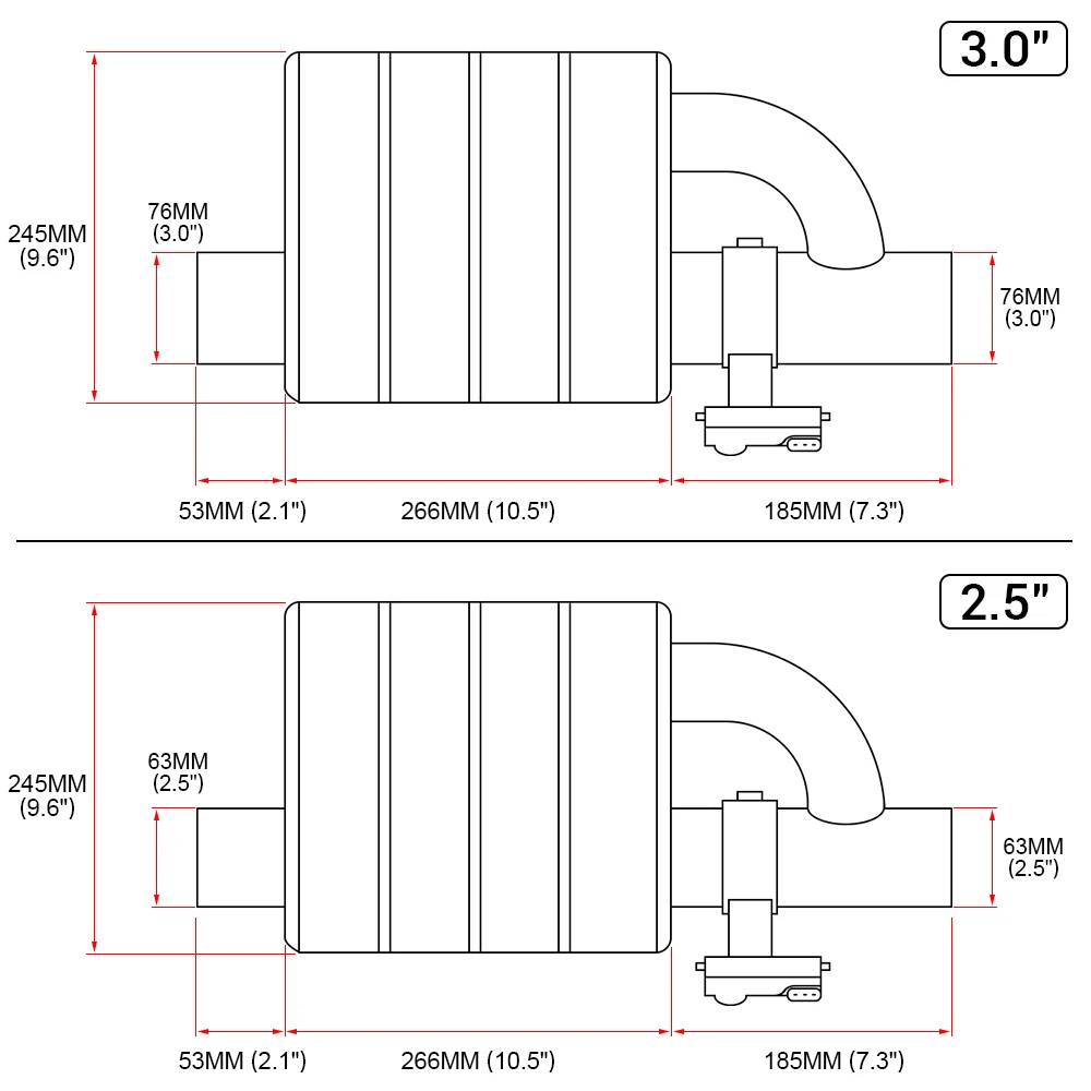 - Подходит для большинства автомобилей с впуском 2,5 дюйма / 3 дюйма.