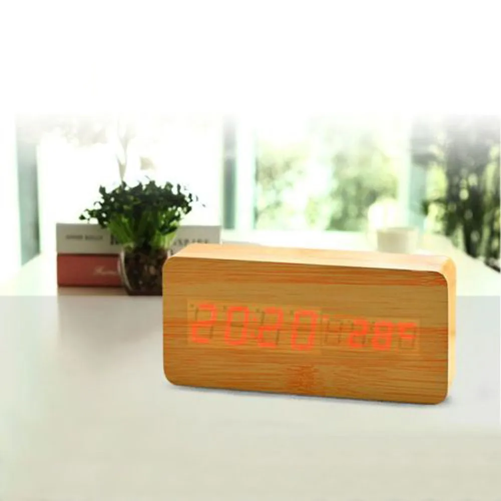 USB/AAA Голосовое управление календарь светодиодный термометр деревянный цифровой будильник