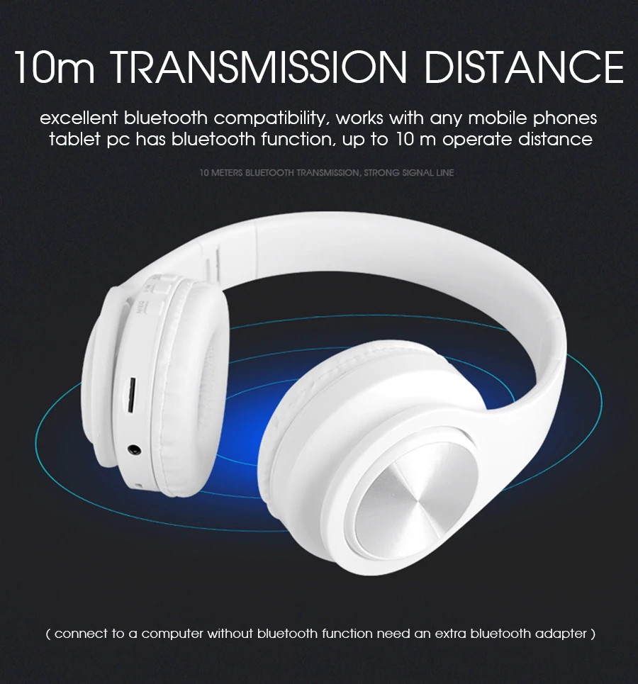 Теплые советы: есть две разные модели: H3 и L3. L3 с дышащей подсветкой, но H3 нет! Особенности продукта: 1). L3 с 7 видов цветов светодиодной подсветкой, очень круто! 2). Отличная совместимость с bluetooth, работает с любым мобильным телефоном, планшетным ПК, ноутбук имеет функцию bluetooth. Расстояние работы до 10 метров. 3). Высокая точность стерео и супер бас звук эффект, слушать музыку высокого качества. 4). Поддержка воспроизведения карт Micro-SD (tf-карта), как и MP3-плеер. Поддержка 32 ГБ макс. 5). Встроенный чувствительный микрофон, поддержка громкой связи, отклонение или ответ на телефонные звонки, это очень удобно. 6). Поддерживает линейный вход AUX, Используйте аудиокабель 3,5 мм, его можно использовать в качестве проводных наушников, даже когда аккумулятор наушников заканчивается, он все еще может использоваться кабелем. 7). Литиевая батарея емкостью 400 мАч, время работы в режиме ожидания до 200 часов и непрерывное воспроизведение до 8-10 часов. 8). Очень удобно носить на ушах, дышащая Белковая кожа, очень мягкая для ушей. Складной и легкий корпус позволяет легко носить с собой и хранить.