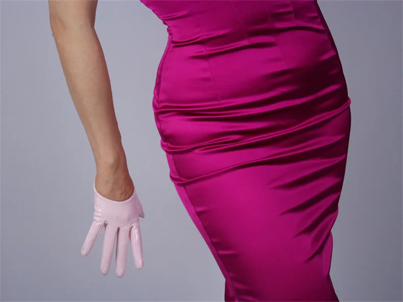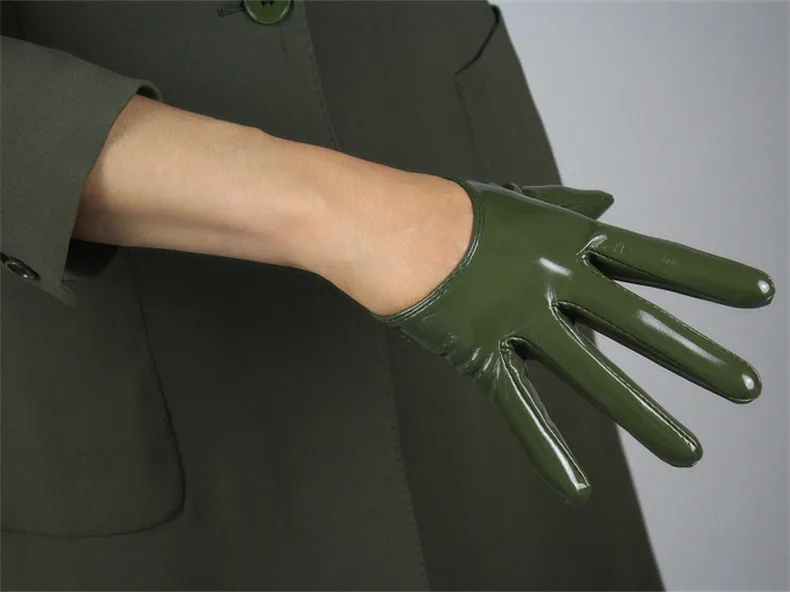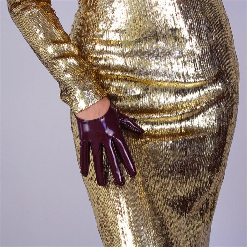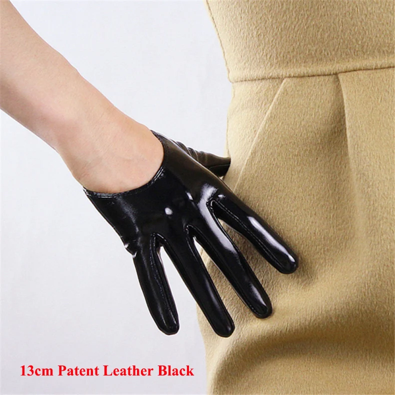 13 см Ультра короткие перчатки из лакированной кожи яркая кожа эмуляция кожа Тонкая зеркальная супер яркая желтая Имбирная желтая WPU122