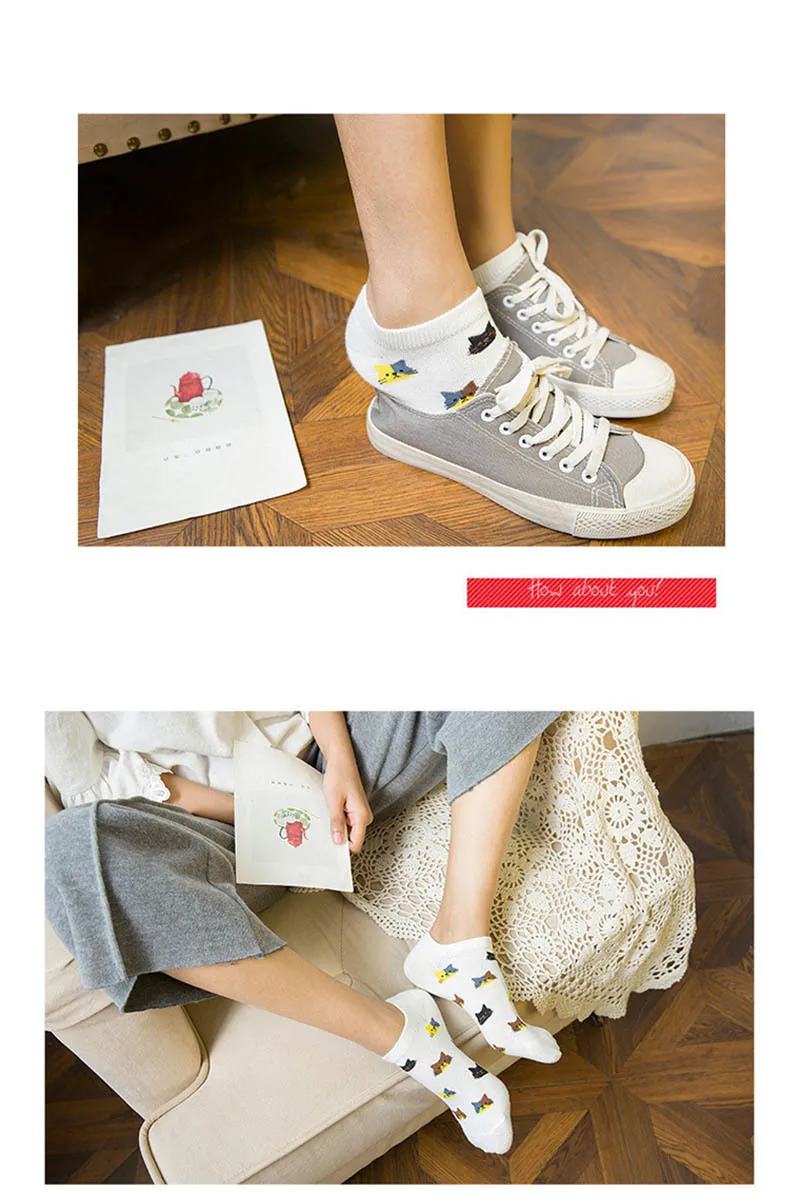 Наименование: Женские Дышащие носки с принтом кота; сезон осень-зима
