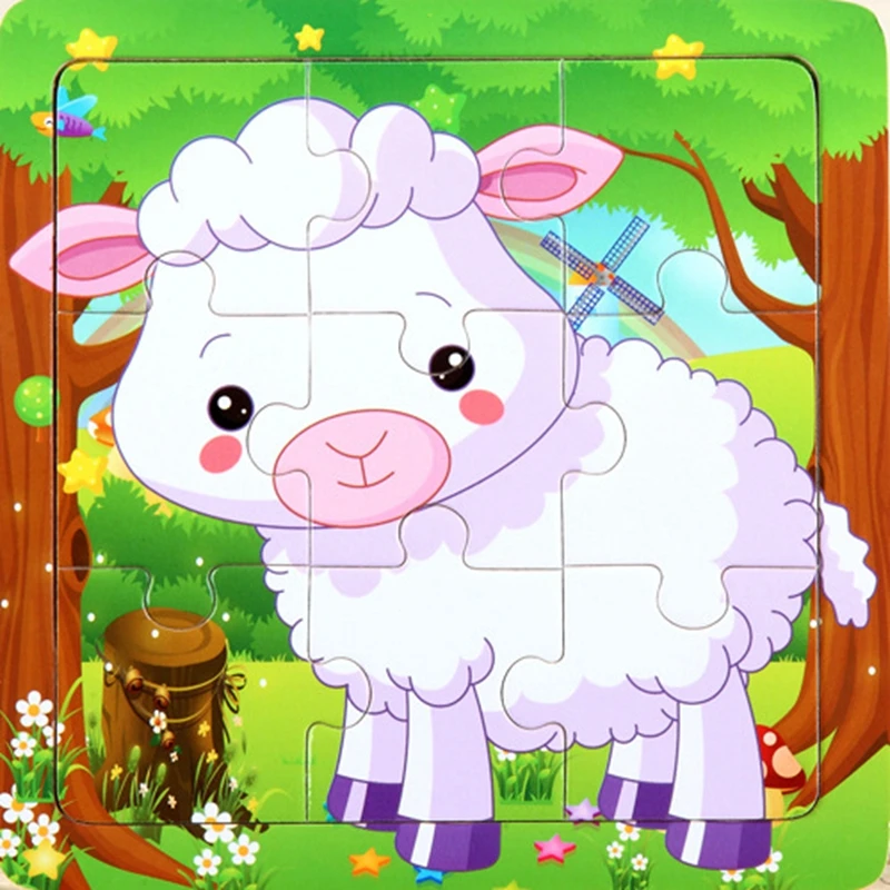 Милая детская головоломка из мультфильма, деревянная маленькая детская игрушка, динозавры, животные, автомобильные деревянные пазлы, развивающие игрушки для детей