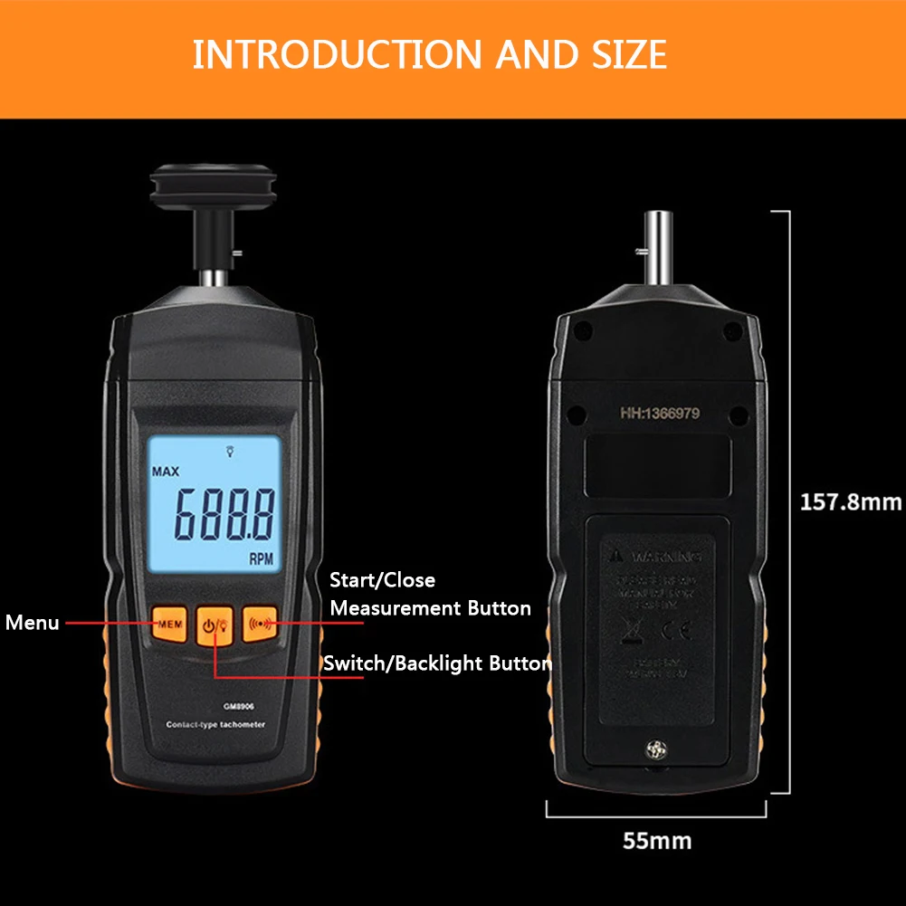GM8906 цифровой тахометр с контактной скоростью, автоматический ЖК-дисплей, тач мотор, Малый двигатель, скорость вращения, измеритель