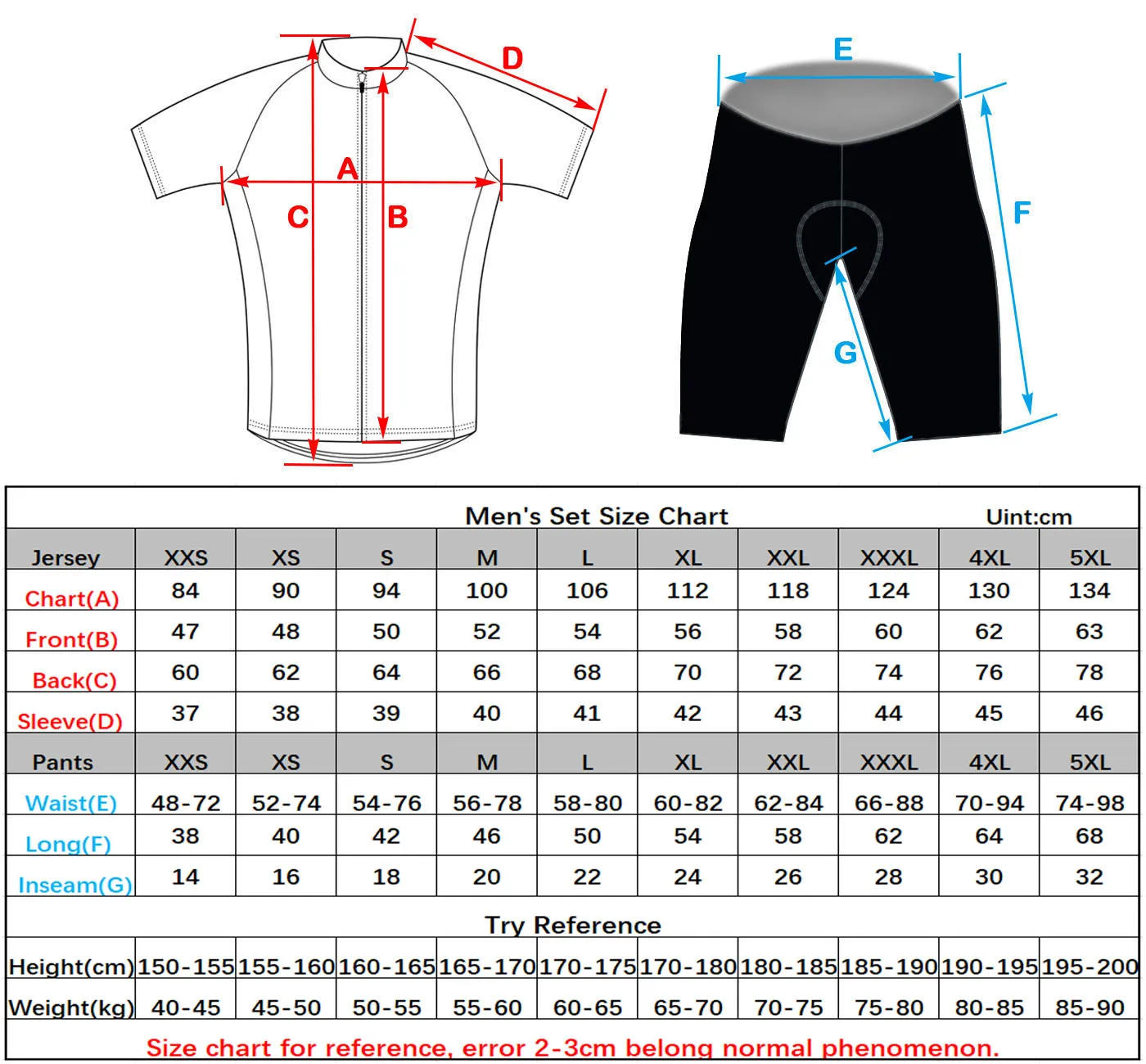 {2XL} обхват груди = 115 см, шорты/комбинезон, обхват талии = 62-84 см 173-183 см 77-85 кг