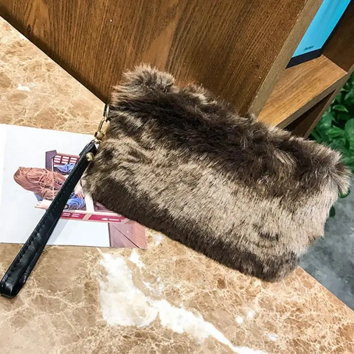 Женский кошелек на молнии однотонный плюшевый Кошелек для мобильного телефона