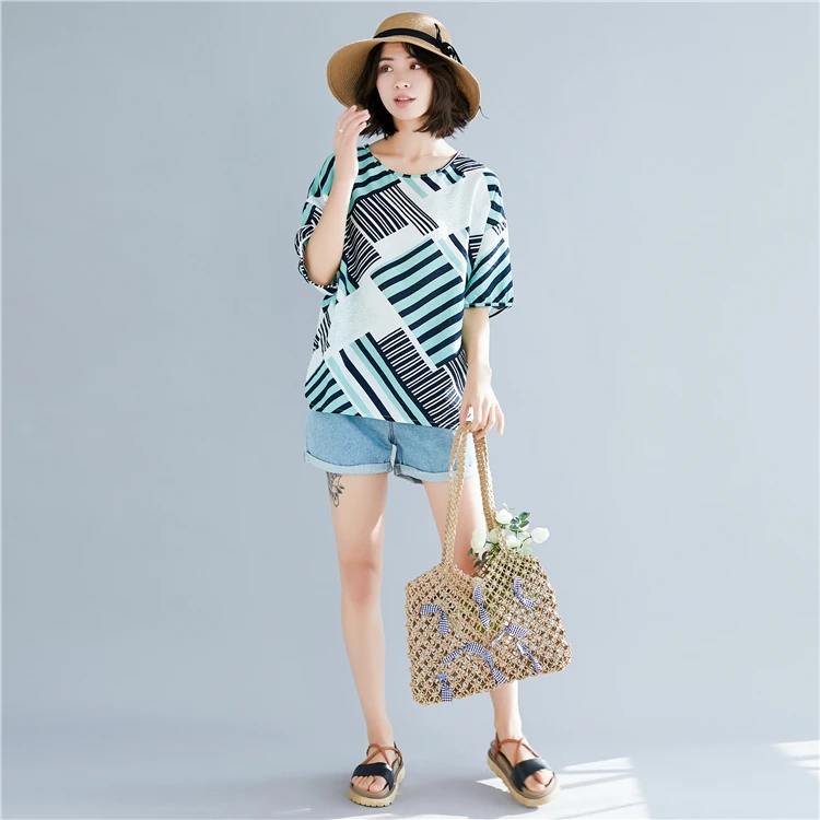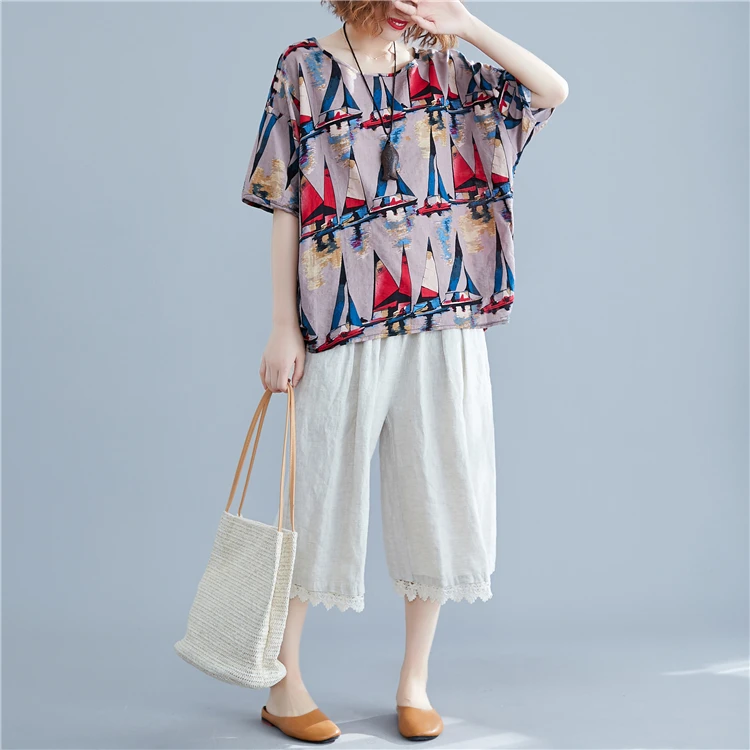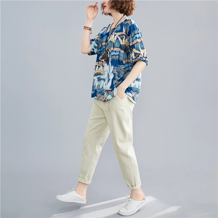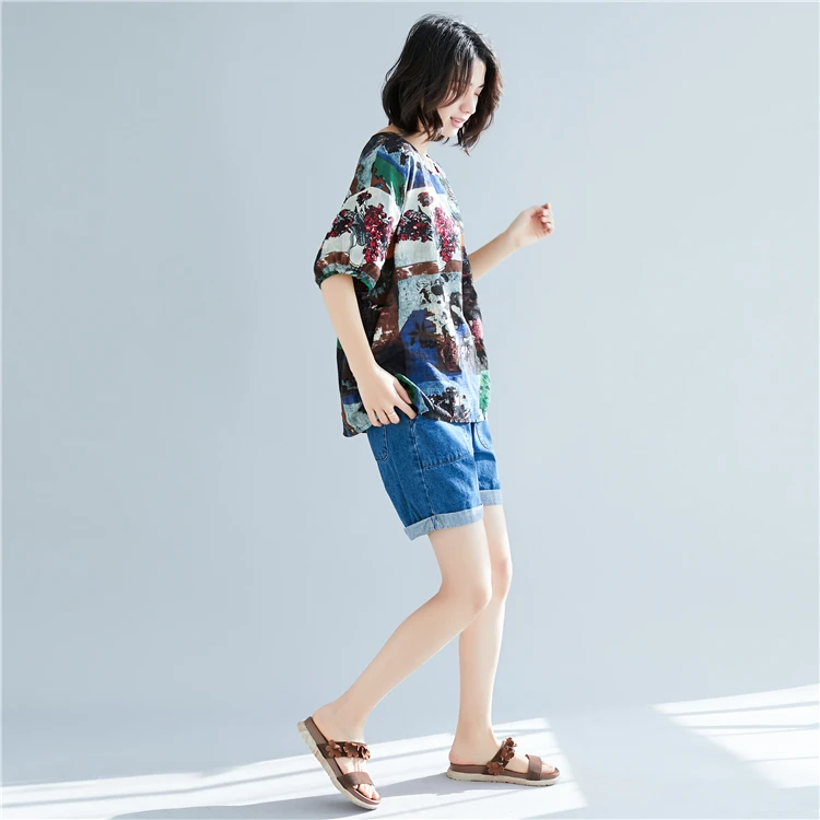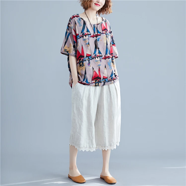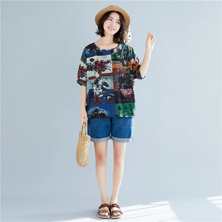Хлопковая футболка размера плюс льняная Футболка с принтом графические футболки