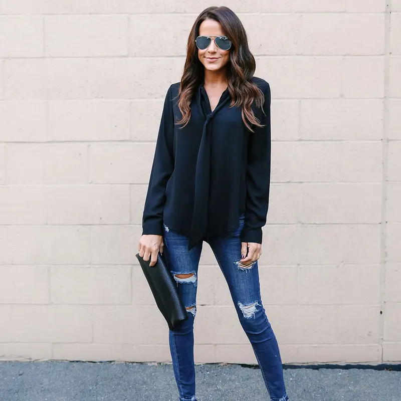 | Trendy Women clothes Casual Long Sleeve Ladies solid Shirts pullover V-neck Loose Chiffon Blouses one pieces Hello! Welcome to our store! Quality is the first with best service. Customers all are our friends.Main Color: AS The Picture show New in Fashion,Women Fashion Chiffon Blouse Tops Style:Casual Material:Chiffon Package included: 1x Fashion TopsSize Chart: