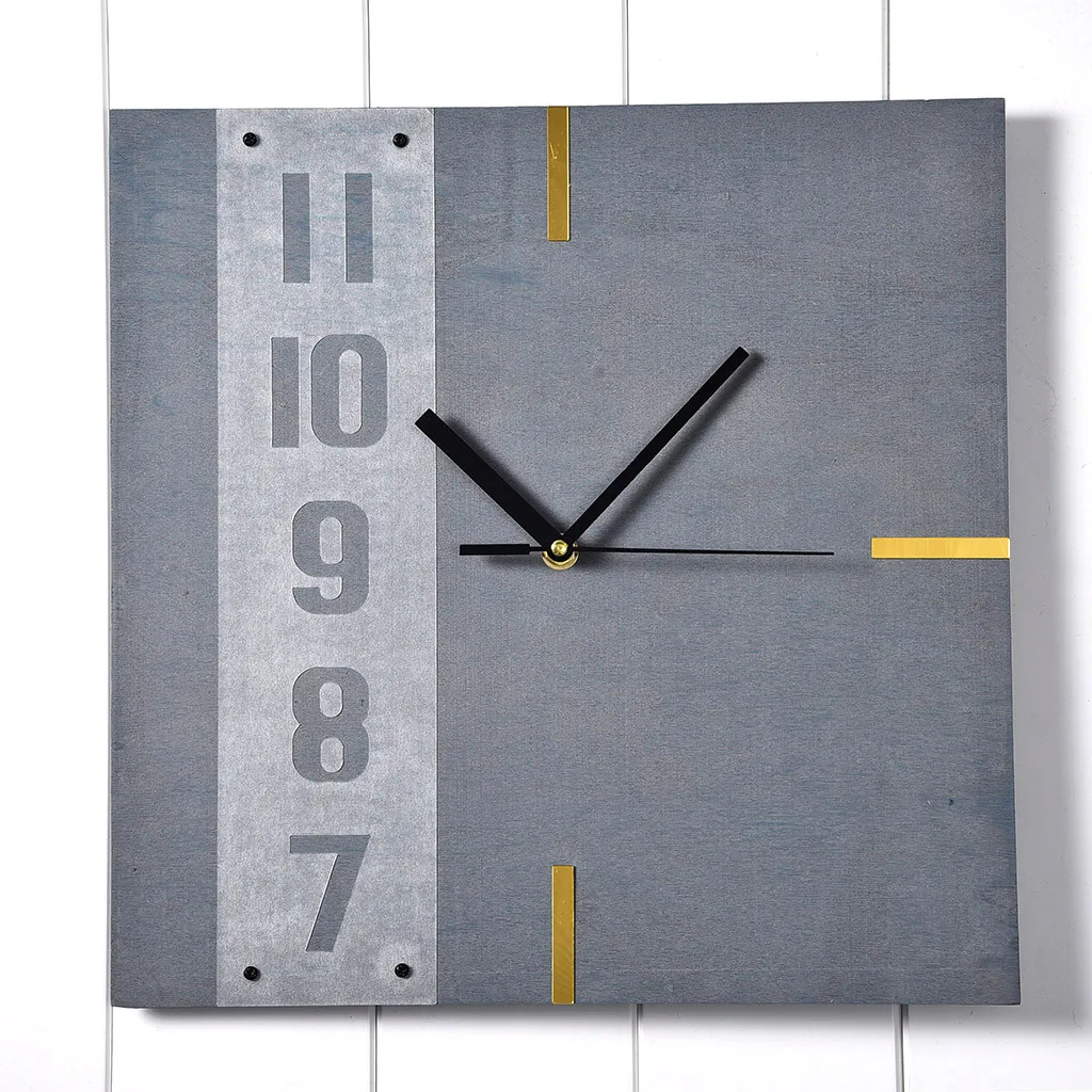 Unique Creative Design Wooden Square Wall Clock With Wood Grain For Home Kitchen Office