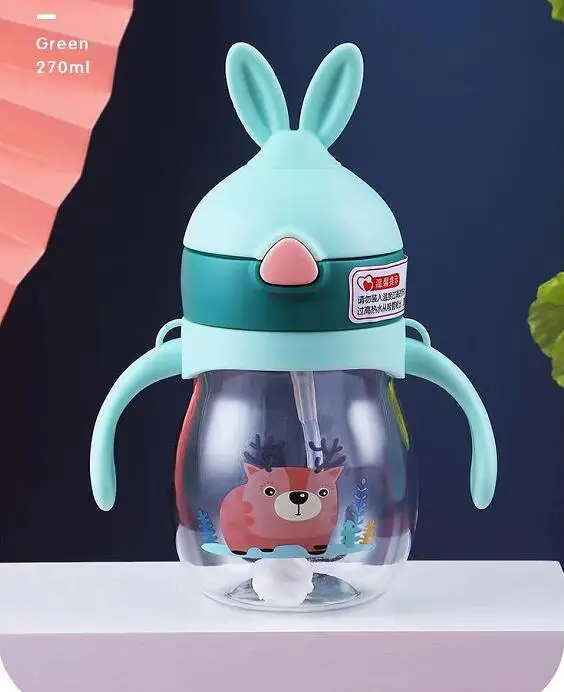 320 мл милый кролик, чашка для кормления детей с соломой, обучающая бутылочка для кормления детей с ручкой, обучающая чашка для детей
