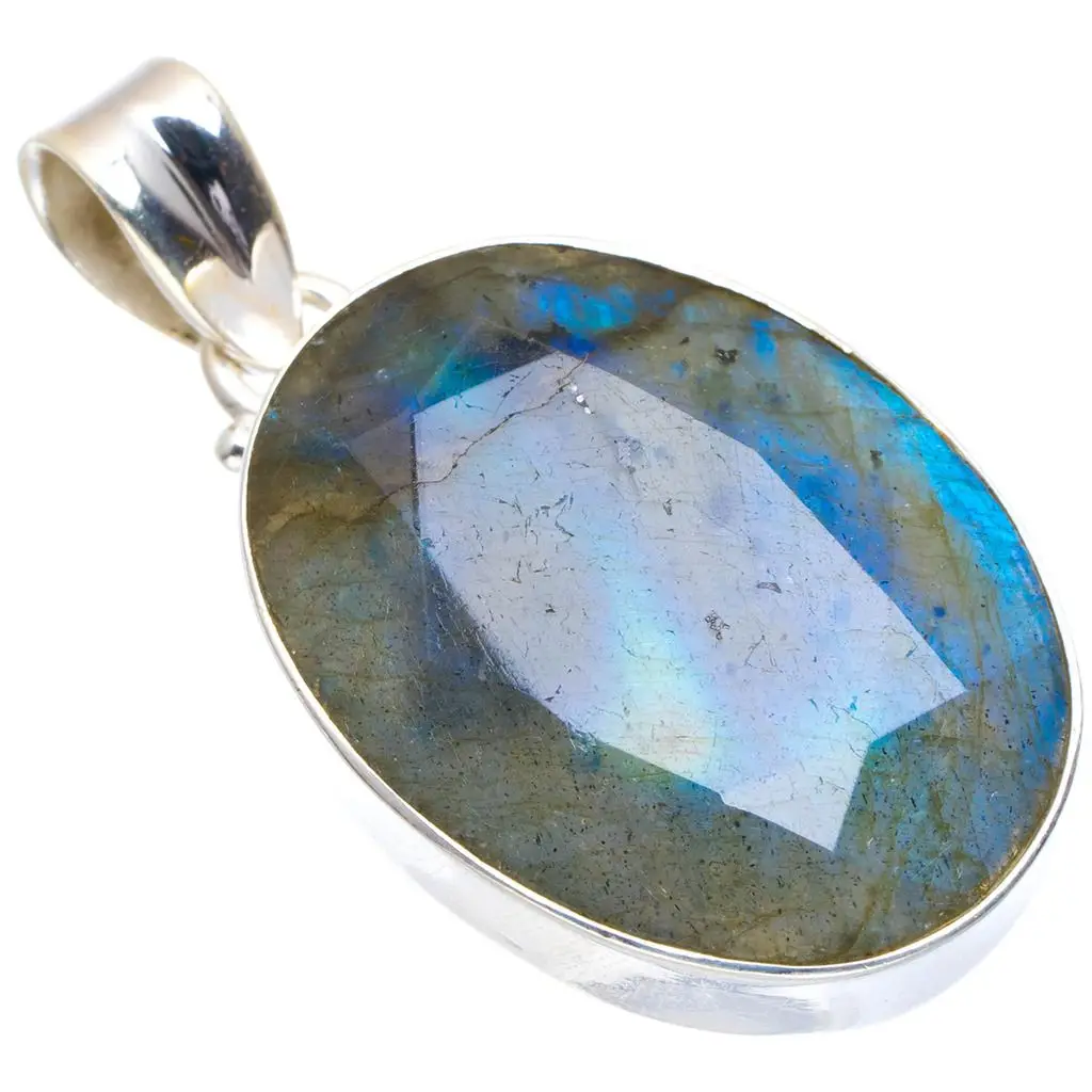 Натуральный Синий огненный Лабрадорит ручной работы уникальный кулон из стерлингового серебра 925 пробы 1,5 "; A1895