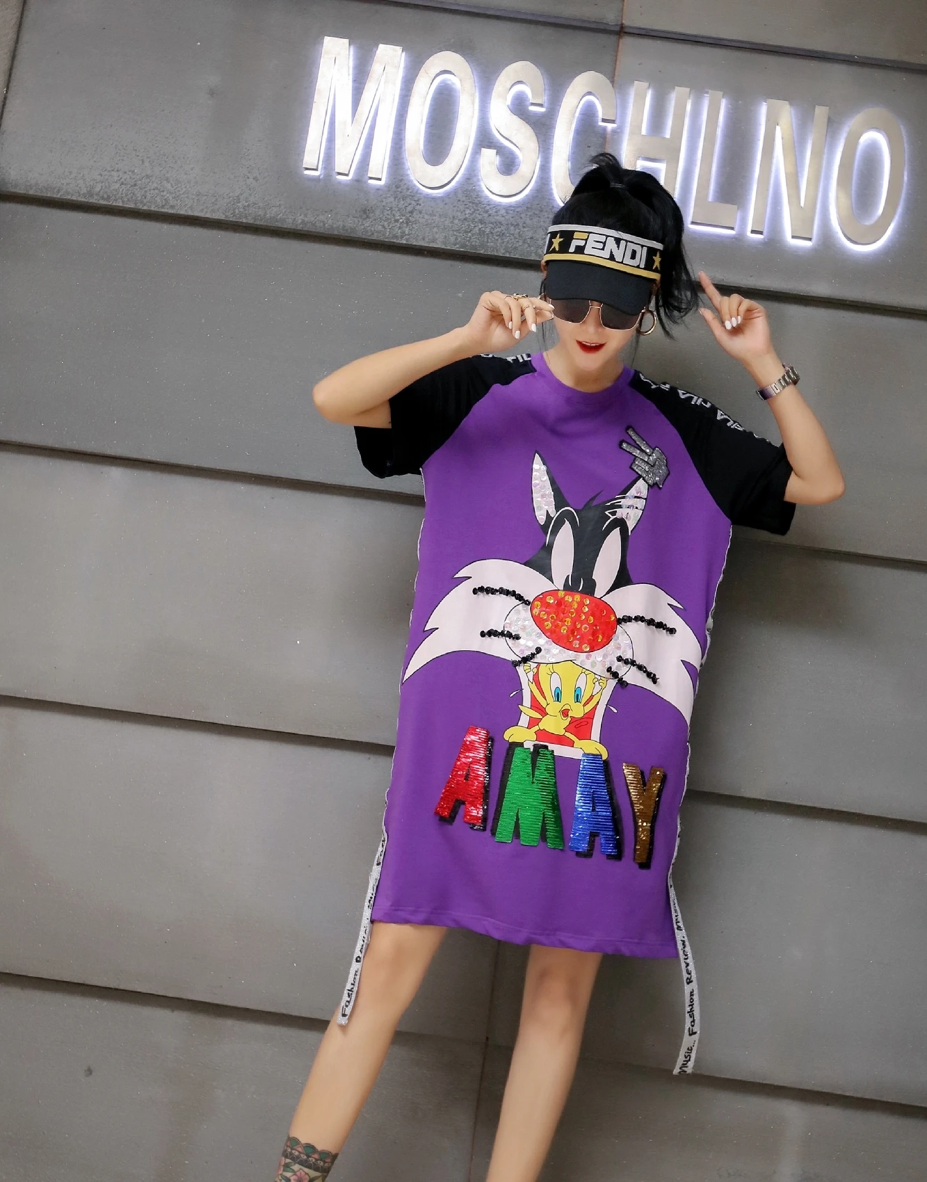 Женская фиолетовая футболка QING MO, Повседневная белая футболка с буквенным принтом и короткими рукавами, ZQY042, лето 2019