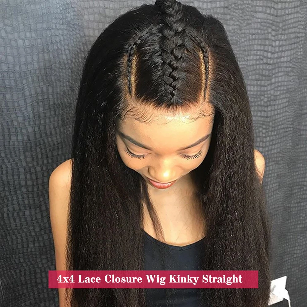 Средняя часть 4X4 Кружева Закрытие человеческих волос парики