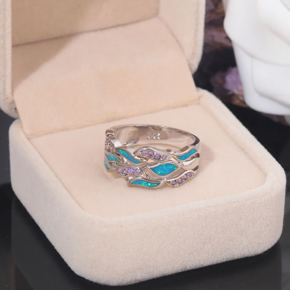 CiNily синие огненные опаловые широкие кольца с камнем посеребренные сиреневые