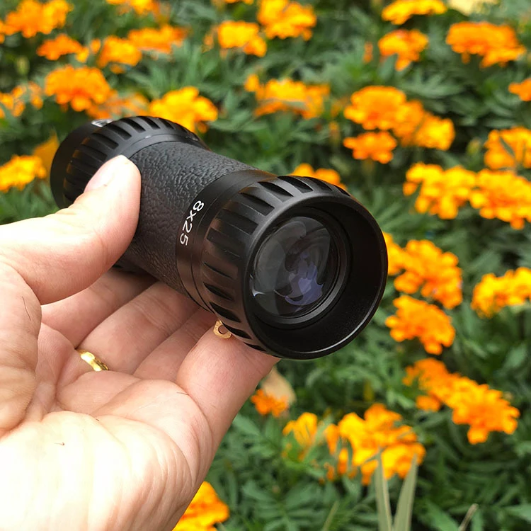 Увеличение мощности 8X25-лучший вид в приключениях на открытом воздухе. С широкоугольным объективом диаметром 25 мм четкие и яркие изображения могут быть видны ближе к расстоянию в 8 раз. Подходит для пеших прогулок, охоты, альпинизма, наблюдения за птицами, наблюдения за дикой природой и пейзажами.