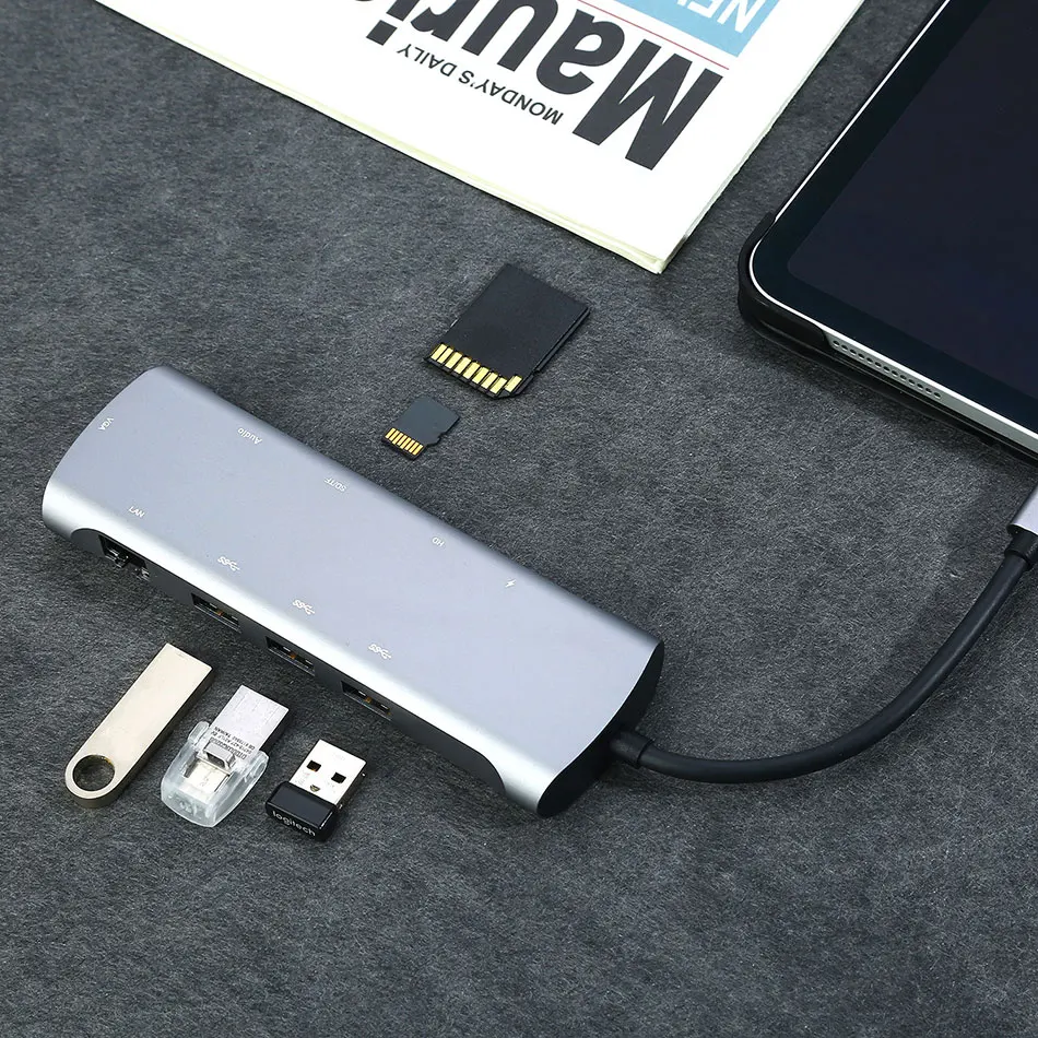 USB Type C док-станция 10 в 1 для MacBook MateBook PC ноутбук адаптер 3 0 порт 4K HDMI VGA RJ45 Gigabit Ethernet |