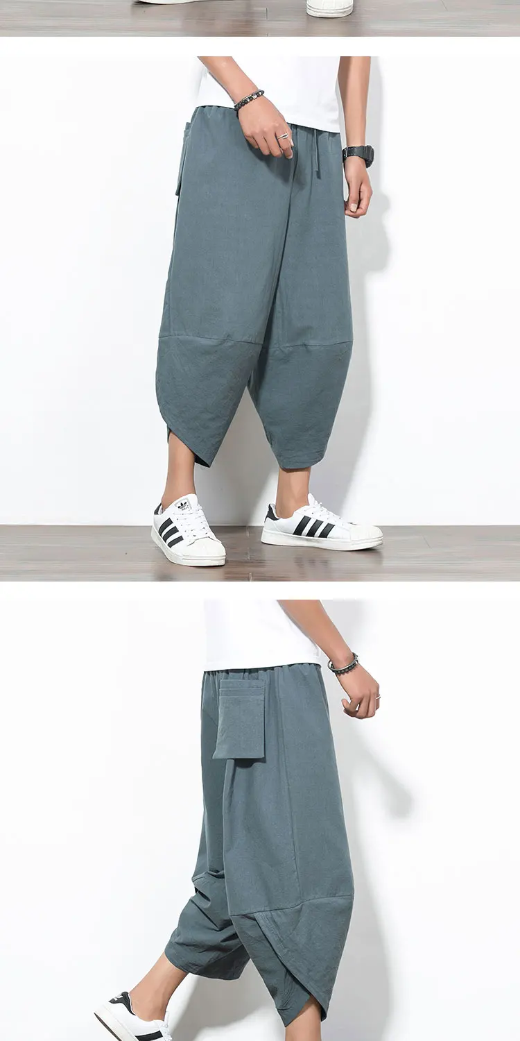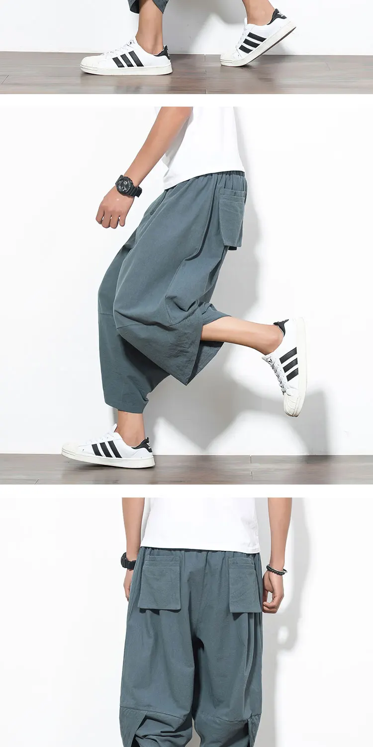 Maxi 5XL Summer Hip Hop Cropped Trousers Linen Long Shorts for Men Harem Pants Bermuda Casual Short Pants Loose Holiday Street