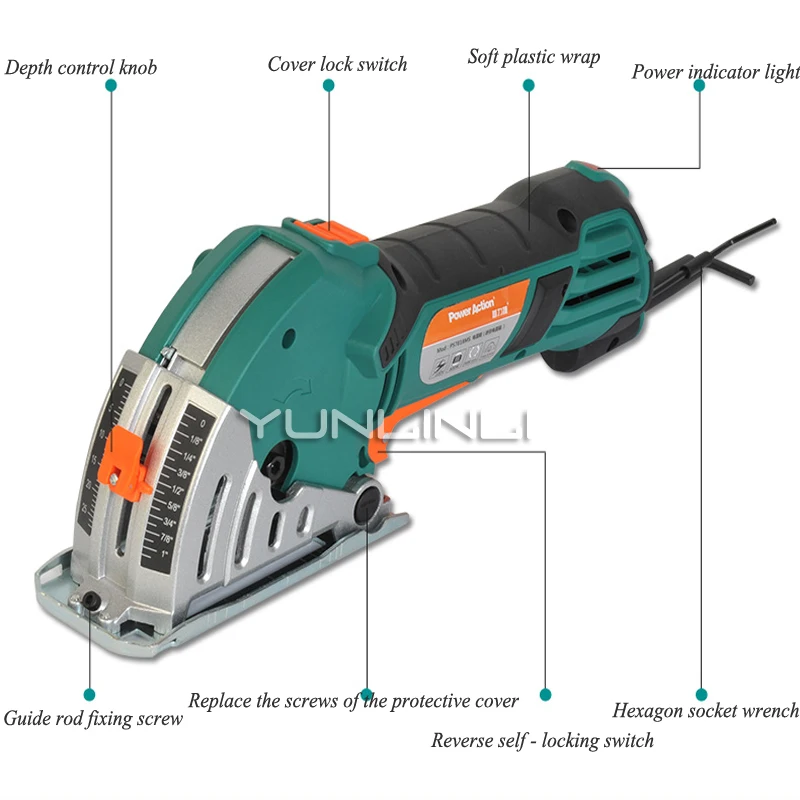 Электрическая циркулярная пилаДеревообрабатывающий инструмент, металлическая плитка, мини-режущий станок, набор бытовой Бензопилы сБесплатно 6 лезвий пилыPS7818MS