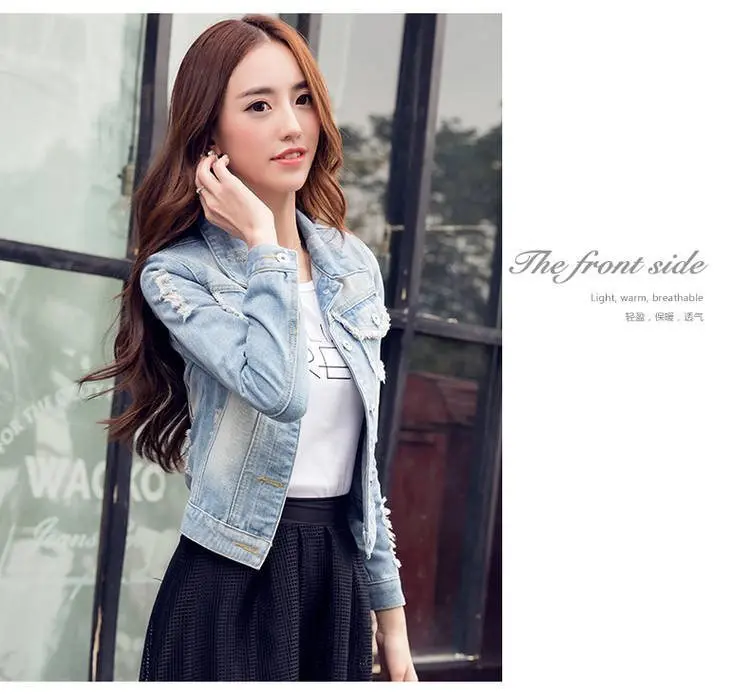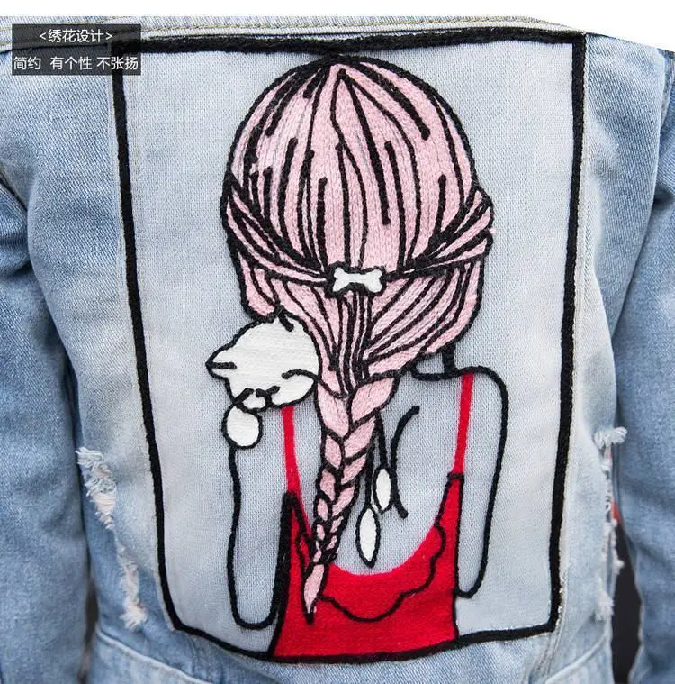 Модные вышитые короткие свободные джинсы для девочек Женские Осенняя куртка