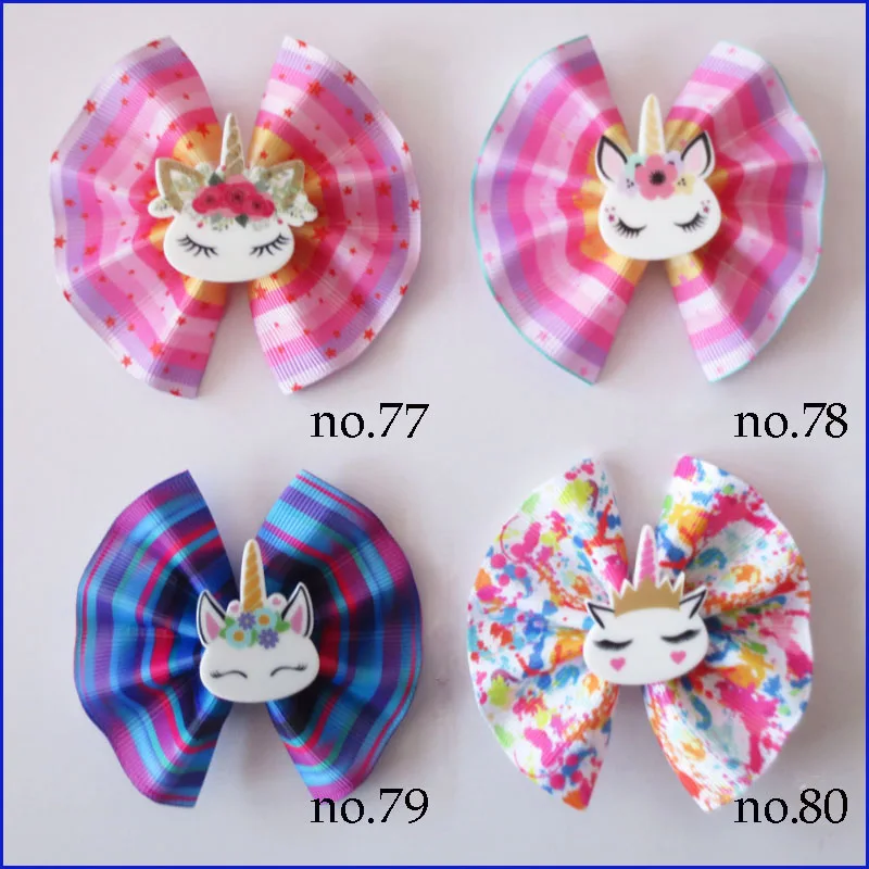 100 благословение девушка 3 "вентилятор заколка для волос с бантом Красочные аксессуары «Единорог» оптовая продажа