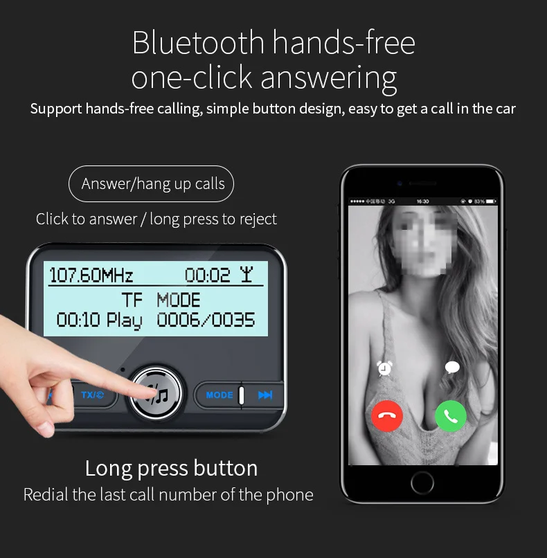 ●Поддержка ответа, отклонения, зависания, повторного вызова через Bluetooth