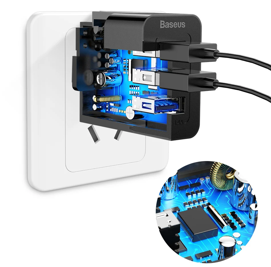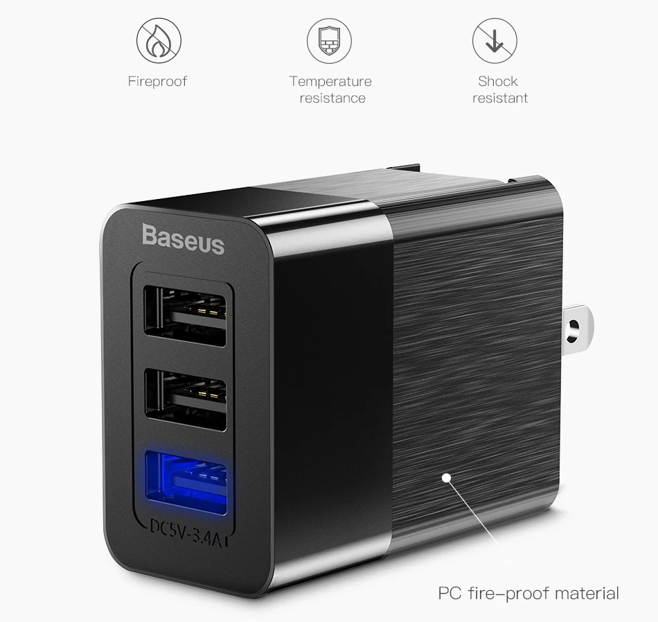 Универсальное usb-зарядное устройство Baseus с 3 портами, штепсельная вилка стандарта ЕС, США, Великобритании 2,4 А, быстрое зарядное устройство, зарядное устройство для путешествий, PhoneCharger для iPhone, Samsung, Xiaomi